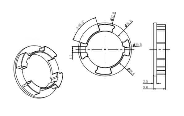 - Назначение: моторизация рулонных штор (узел посадки мотора в трубу).