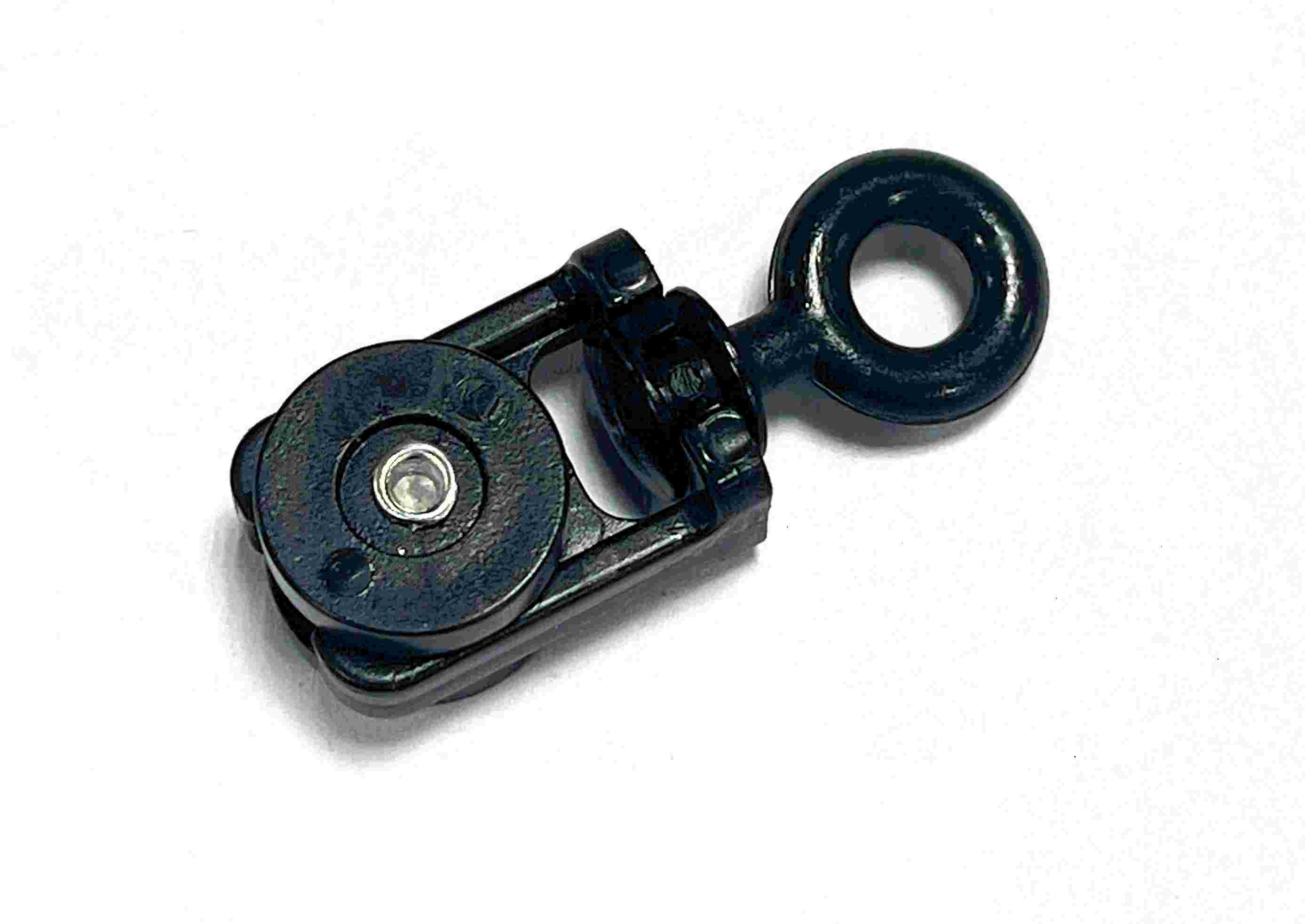Бегунок Glydea, пластик, чёрный — оригинальный комплектующий элемент электрокарнизной системы для раздвижных штор. Бегунок выполнен из пластика, имеет поворотное кольцо, рассчитан на максимальную нагрузку 1,5 кг и имеет ширину 14 мм; цвет — чёрный. Такой тип бегунка подходит для стандартных штор и применяется в различных конфигурациях/типах электрокарнизов как элемент подвеса полотна.