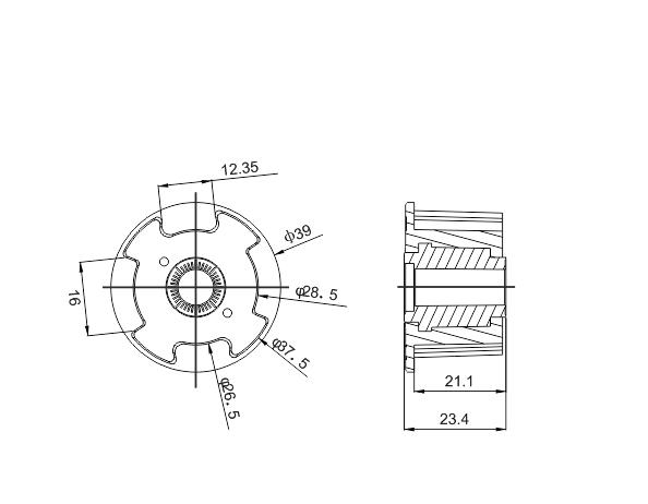 Изделие предназначено для труб/вала диаметром 38 мм и применяется в автоматизированных рулонных системах, где используется привод AM25. Используется при сборке и ремонте рулонных штор с электроприводом, совместно с комплектующими под трубу 38 мм (например, адаптерами под AM25).