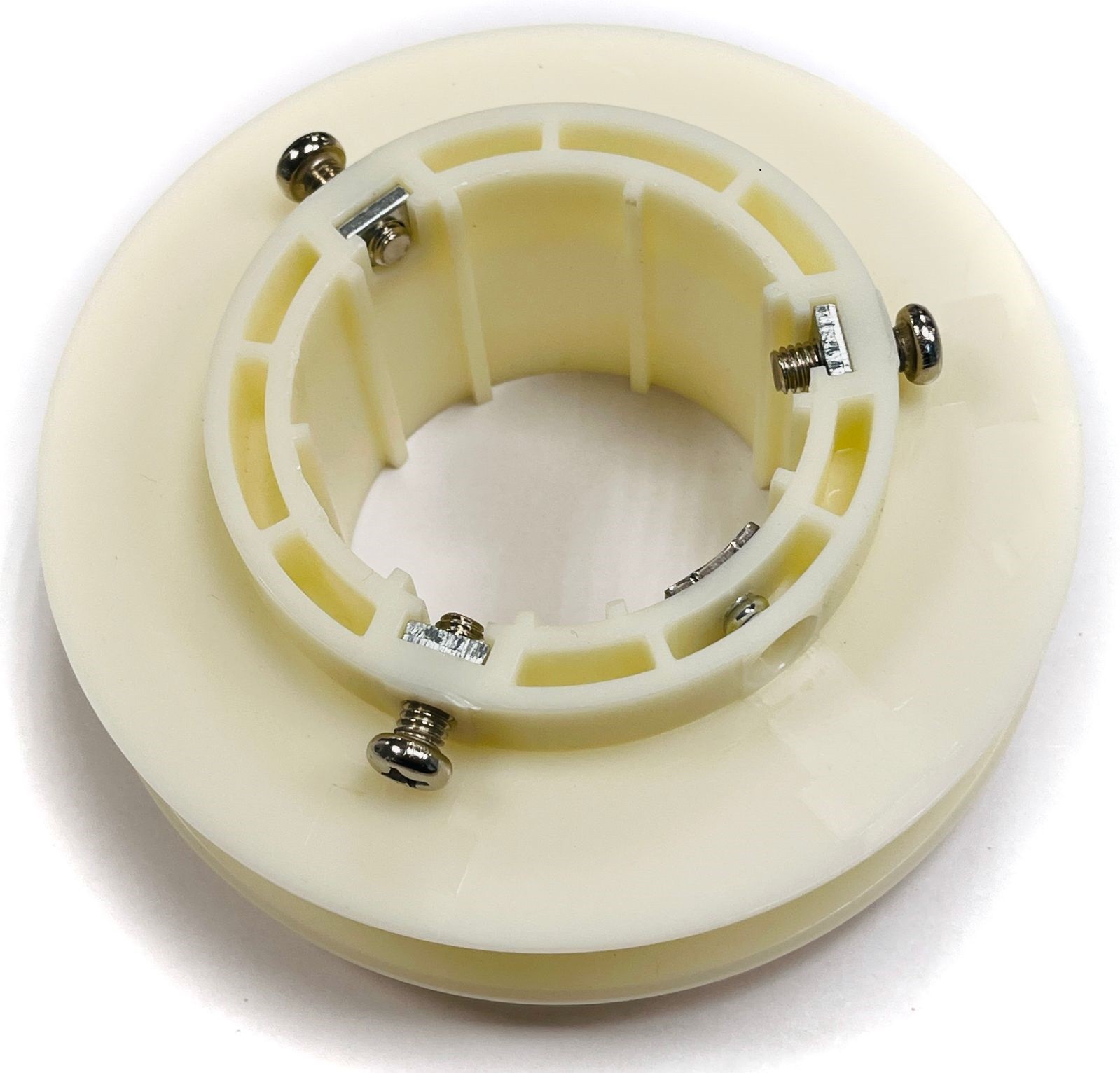 В лифт‑системах для штор используется труба диаметра 55 мм (под мотор тип AM45), и комплектующие под этот размер применяются для корректной сборки подъёмного узла. Катушка для ремня относится к таким комплектующим: она нужна, чтобы ремень аккуратно наматывался/разматывался в процессе работы механизма и карниз можно было опускать до удобной высоты для снятия/замены ткани.