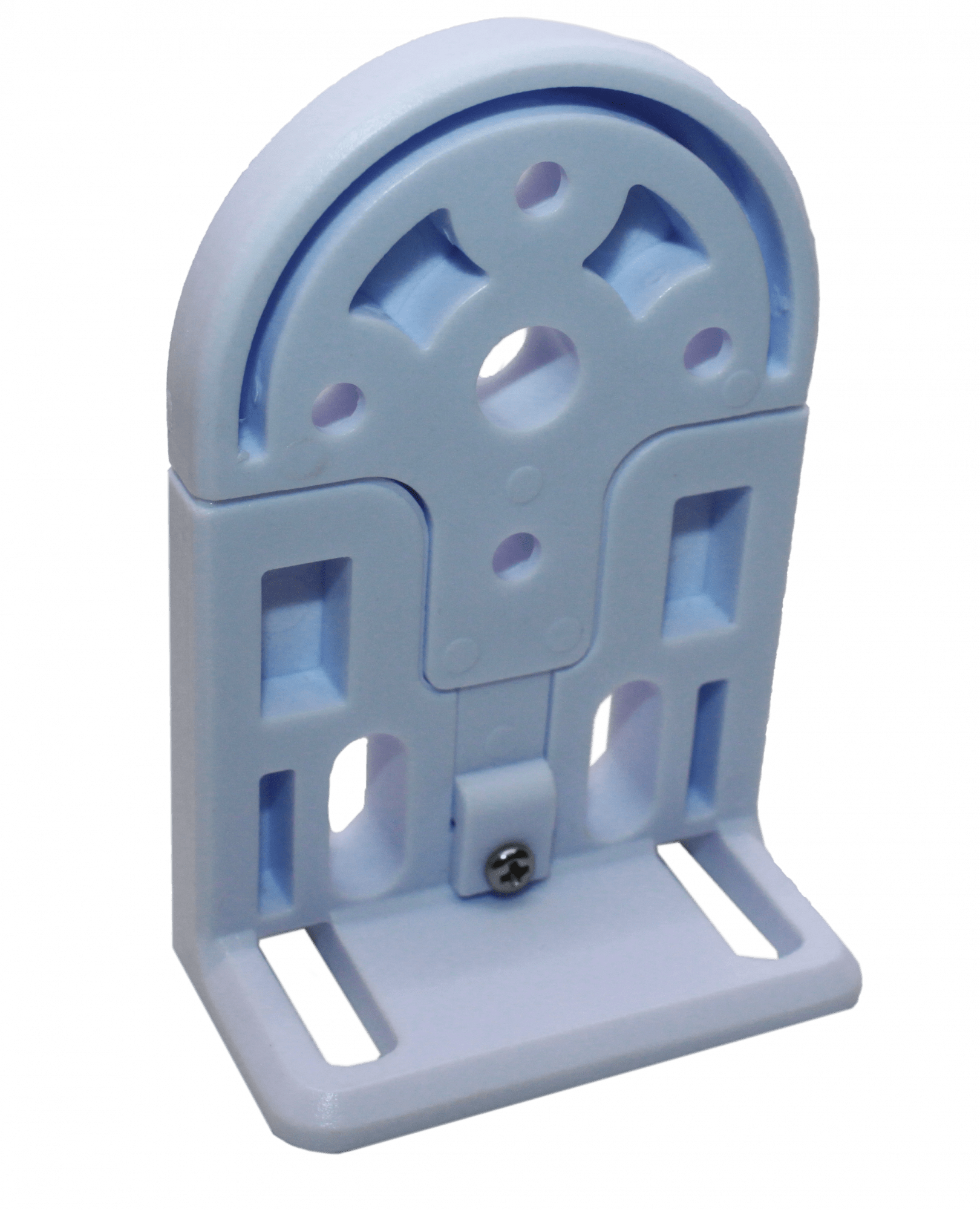 Крепление используется при сборке и ремонте рулонных штор с электроприводом: фиксирует узел в точке монтажа и обеспечивает правильную посадку механизма по типу «круглое отверстие». Вариант с круглым отверстием выбирают, когда конструкция кронштейна/посадочного элемента рассчитана именно на круглую форму (в отличие от исполнения с квадратным отверстием).