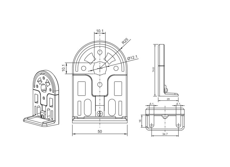 Крепление пластик для АМ35, квадратное отверстие (1.04.0315) — это пластиковый кронштейн/держатель для установки узла рулонной системы с приводом AM35, где посадка выполнена под квадратное отверстие.