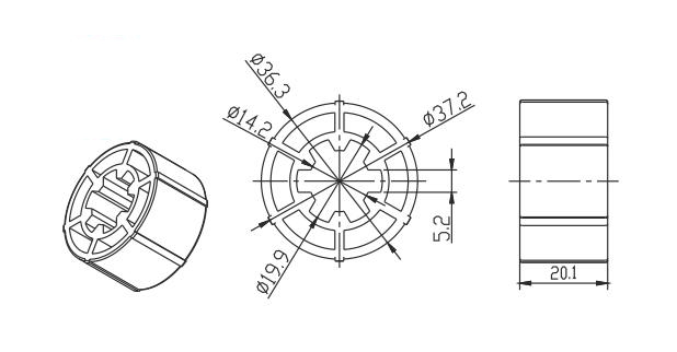 Переходник обеспечивает правильную посадку мотора AM35 в вал 40×1,5 мм и помогает передавать вращение от привода на вал, чтобы рулонная штора работала стабильно. Используется при сборке и ремонте моторизованных рулонных штор на базе приводов AM35.