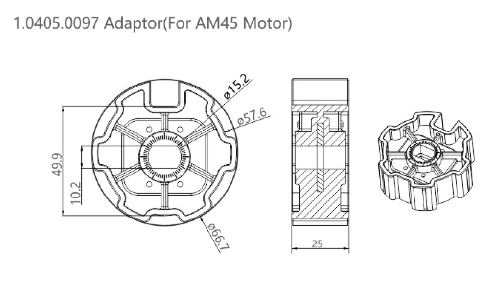 Переходники для внутривальных приводов используются, чтобы правильно состыковать мотор с валом нужного диаметра и обеспечить передачу вращения на вал. Соответствует форм‑фактору привода AM45.