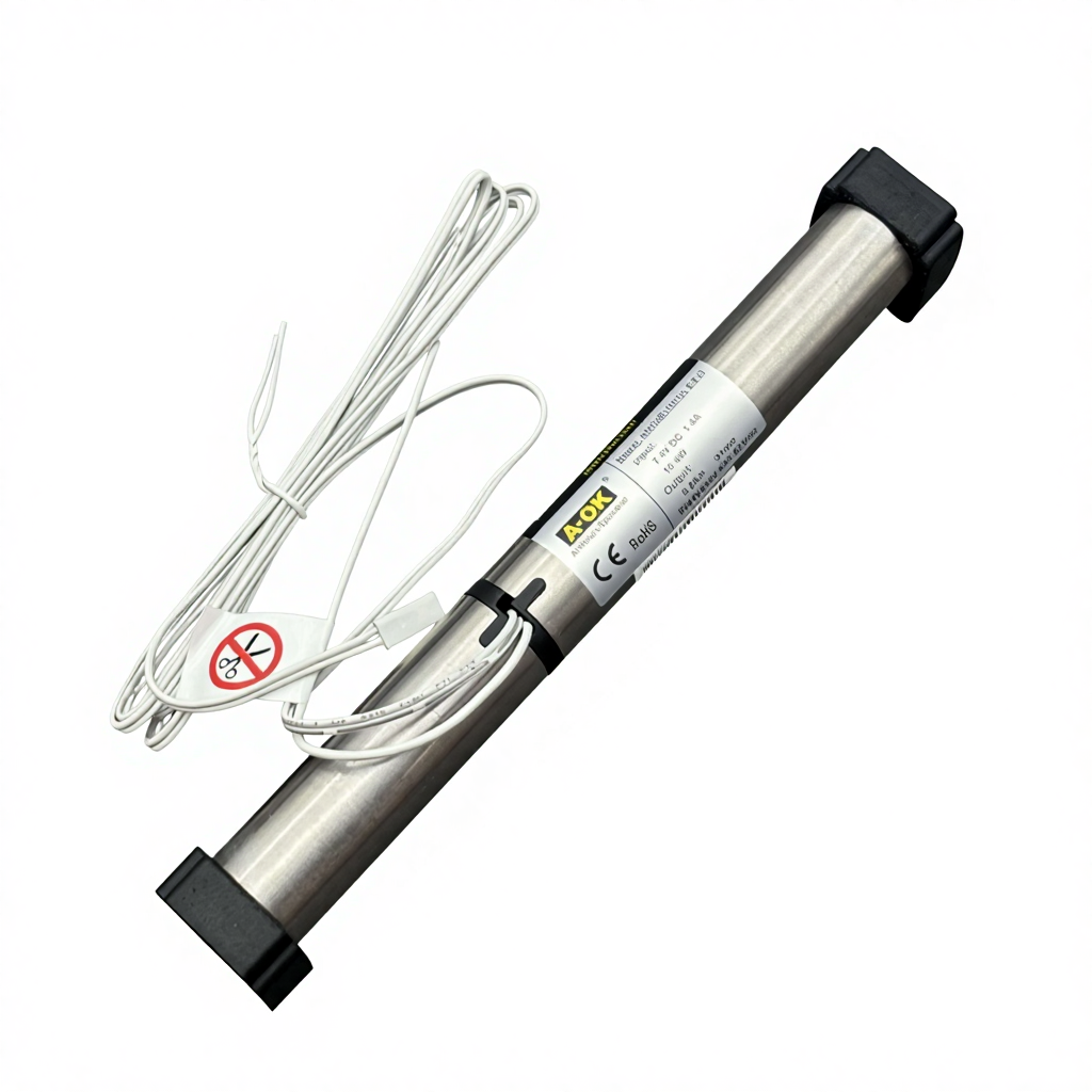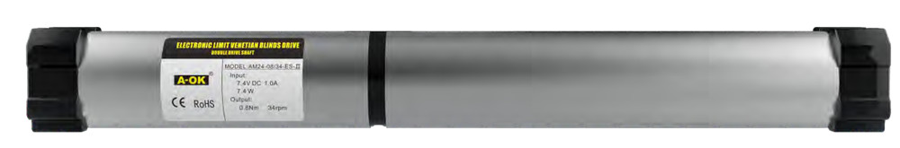ОПТМОТОР поставляет мотор A-OK AM24-0.8/34-ES-II — это DC‑мотор с аккумулятором и электронными ограничителями, рассчитанный на радиоуправление (RF) и применение в системах внутренних солнцезащитных изделий (плиссе, жалюзи, сотовые жалюзи, римские шторы).
