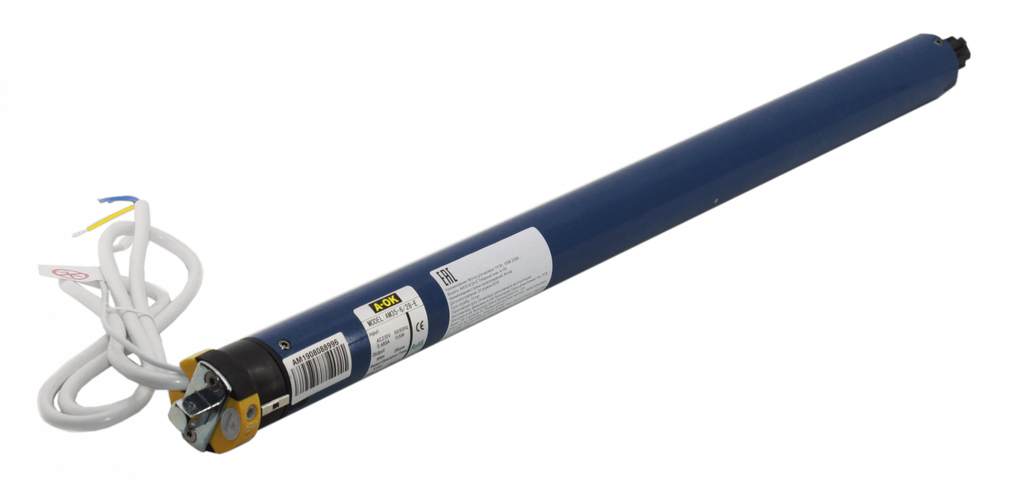 ОПТМОТОР поставляет мотор A-OK AM35-6/28-E — это трубчатый мотор диаметра 35 мм с электронным ограничителем хода, радиоуправлением (RF), рассчитанный на применение в системах внутренних солнцезащитных изделий (рулонные, «зебра», «шангри‑ла», венецианские, ZIP).
