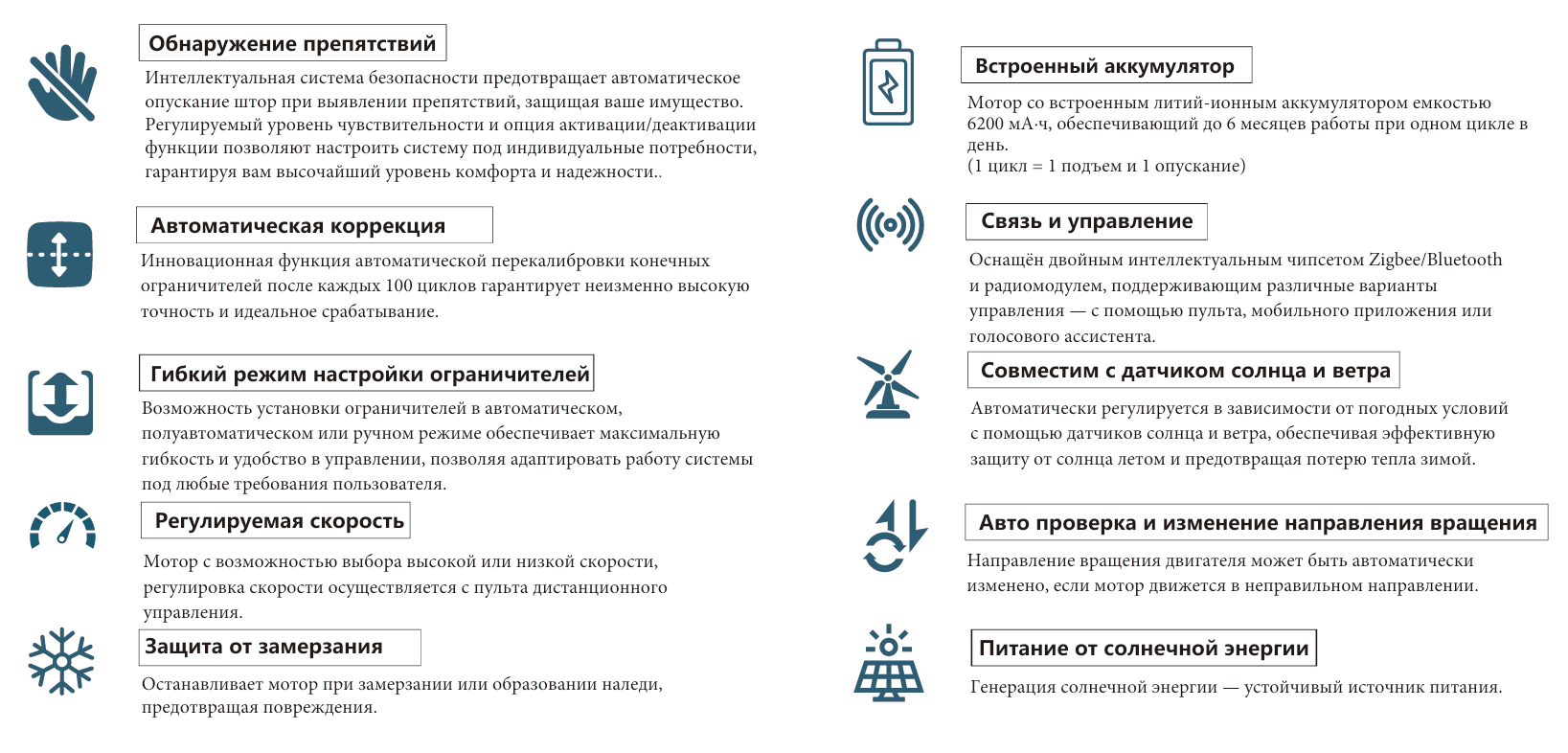 - Обнаружение препятствий: предотвращает автоматическое опускание при препятствии, чувствительность регулируется.