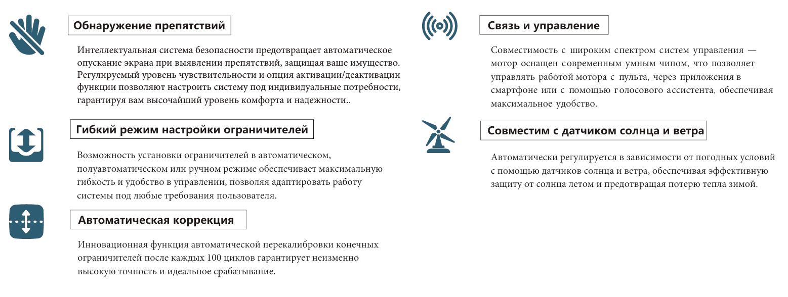 Профессиональные установщики: монтажники ZIP‑систем и интеграторы, которым важны электронные пределы, функции безопасности (препятствия) и подключение к автоматике/датчикам (солнце/ветер) на объектах.