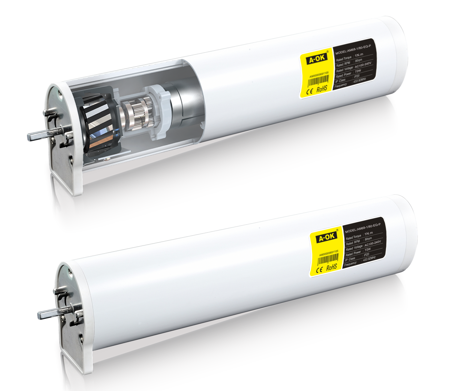 ОПТМОТОР поставляет мотор A-OK AM68-1.5/100-EM-P-Z — это DC‑привод (AC 240В) для электрокарнизов, рассчитанный на тихую работу, безопасность и удобное управление с помощью радио (RF) и через хаб управления (ZigBee) для интеграции в умный дом.
