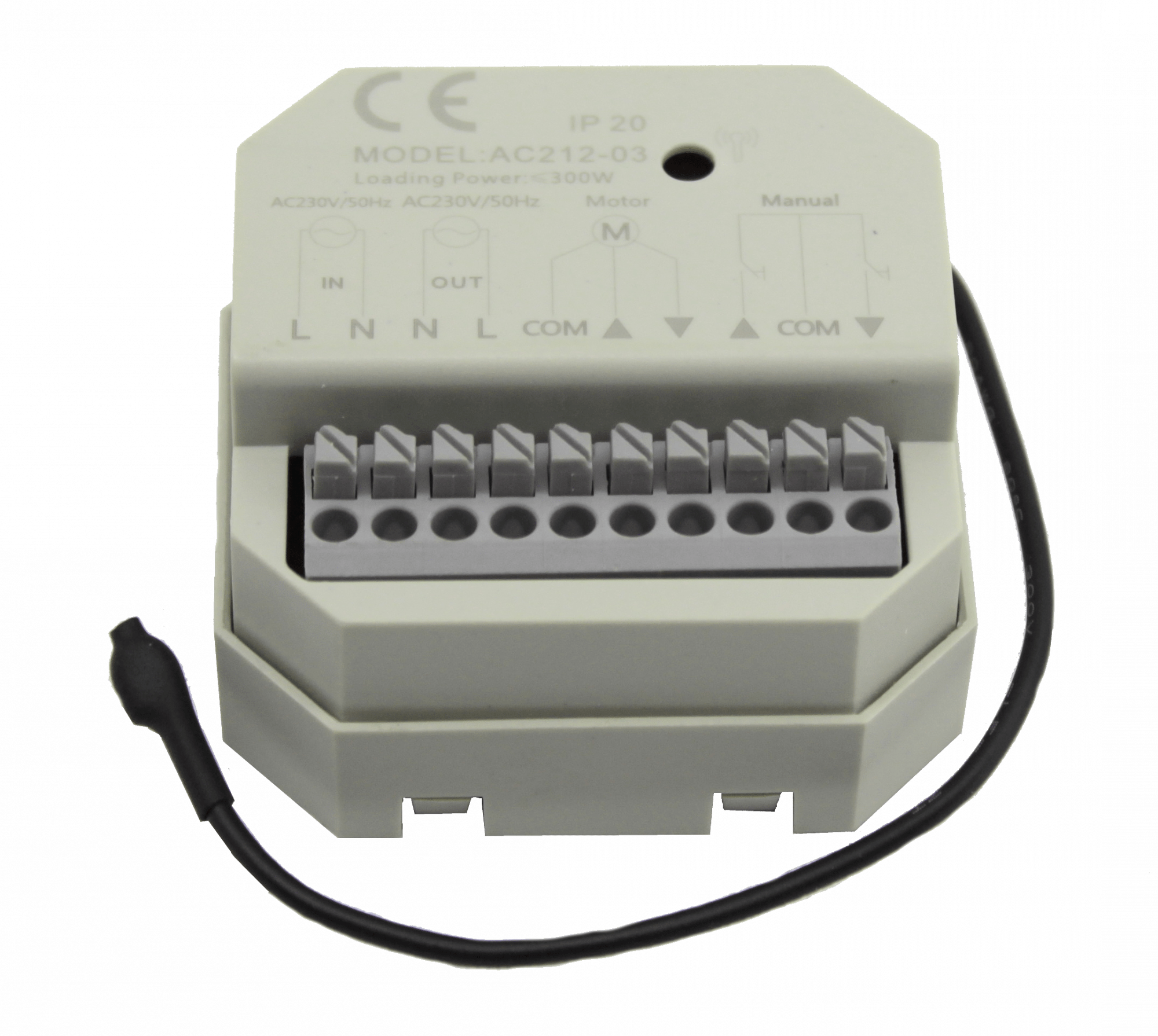AC212-03 — радиоресивер/групповой контроллер A-OK европейского стиля, который поддерживает подключение до 4 моторов и позволяет организовать индивидуальное и групповое управление.