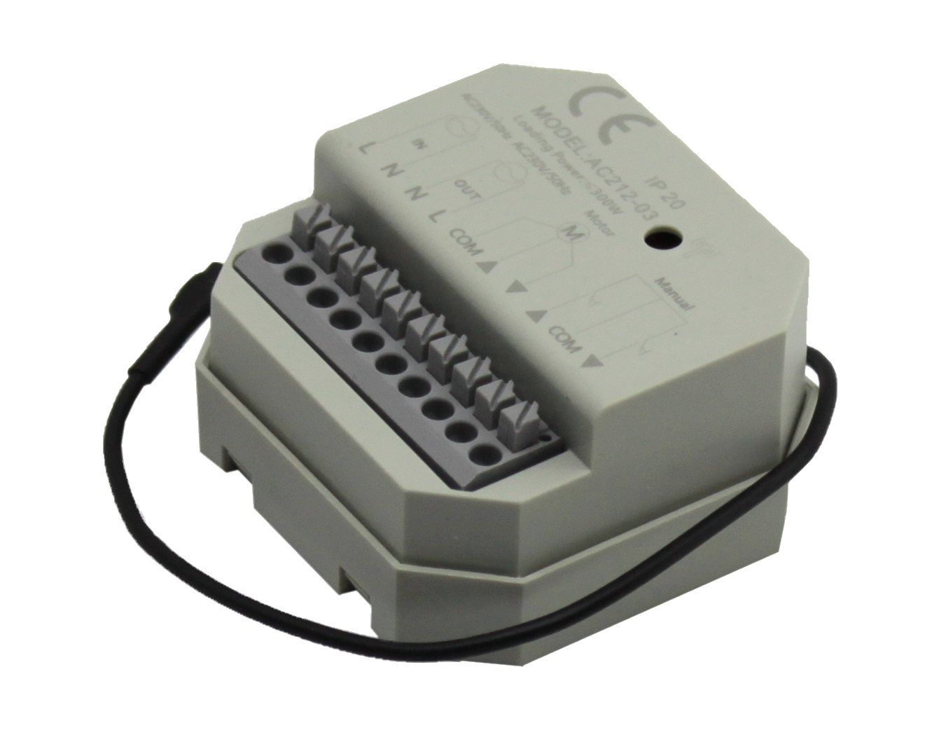 Радиоресивер A-OK AC212-03 совмещает функции радиоприёмника и группового контроллера в одном устройстве и предназначен для настенного монтажа (форм‑фактор 76×76 мм). Устройство поддерживает подключение до 4 моторов с возможностью индивидуального и группового управления, а также работу как от пульта (Remote), так и от ручных выключателей (Manual). Для интеграции в системы «умного дома» предусмотрен интерфейс RS485, а корпус выполнен из УФ‑стойкого и огнестойкого ABS‑пластика; также указана работа в широком температурном диапазоне.