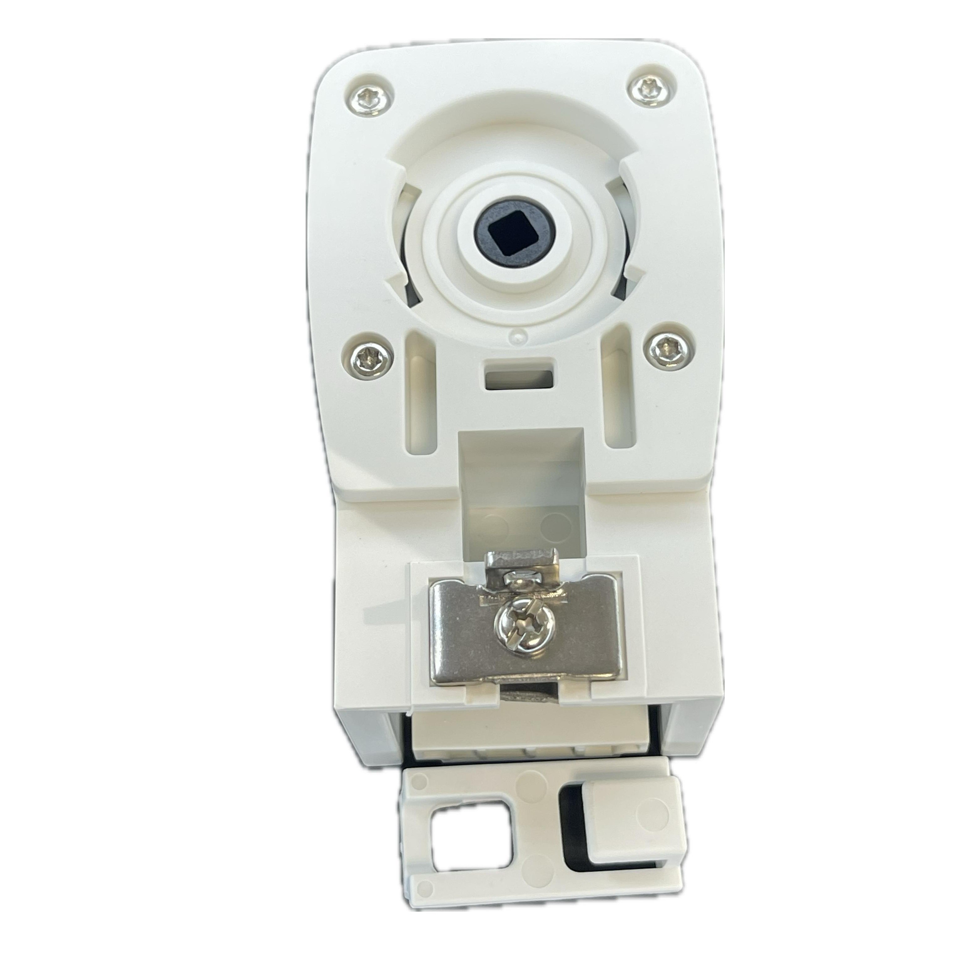 Заглушка приводная AM50 (универсальный редуктор), белая, Trietex — торцевая деталь приводной стороны электрокарниза, которая ставится на конец профиля и позволяет установить привод AM50 с удобной стороны, а сам узел закрывает и фиксирует элементы редуктора.